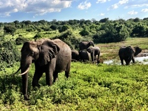 There weren’t a huge variety of animals in the river, but we saw lots of elephants, crocodiles, buffalo and hippos. We managed to pull up right next to one herd of hippos, bathing in the river, that actually swam up and hit our boat from beneath so as to mark their territory. Attacked by a hippo: check!