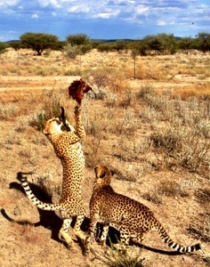 We carried on, and before long there were three more cheetahs running towards us. We fed all three of them in similar fashion then moved on to the next ones. We fed 9 cheetahs all together and then finally drove back to camp. What an exciting afternoon!