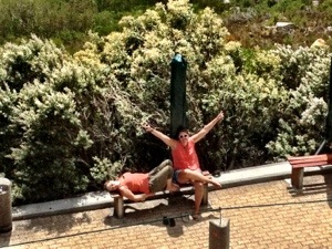 So we bought a tram ticket down and hoped for the best. Sure enough, the two of them were crashed out on a park bench waiting for us!