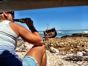 Just a little ways into Agulhas National Park, we came across a section of beach with nothing around but an old, rusted shipwreck. We backed up to the shore and sat in the trunk of the car, looking out over the ocean. We cracked a now warm beer and enjoyed the view with some music. This was paradise.