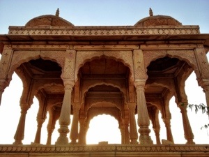 They were gorgeous in the setting sun. Beautiful carved pillars in a light sandstone colour with the city as a backdrop. The Jaisalmer fort was all lit up and sparkling in the background as the sun gleamed across the front of it. The whole thing was incredible.