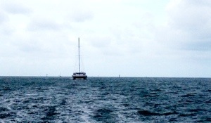 It was pouring in Cairns that morning. Big surprise. But I’d be in the water anyways, so I figured it couldn’t be that bad. I hopped on the boat, had some coffee and a muffin and sat down to fill out my forms. I met an old English guy and a couple guys from Switzerland and joined them at the table. One of the Swiss guys had some sea sickness pills and offered them around.