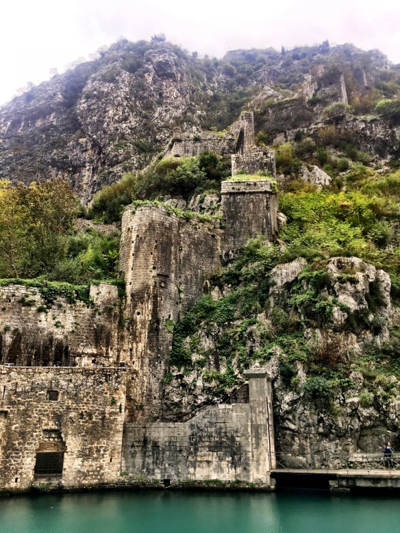 We used Kotor as our home base for exploring the nearby region of Montenegro. Although our tour inland was cancelled, we had no problem exploring the coastline on our own. Budva, is a small resort town just 30 minutes from Kotor. At over 2500 years old, it is one of the oldest settlements on the Adriatic Coast. The walled old town was built by the Venetians as a defence against pirates. This was particularly exciting to Jodon and I since we are half way through “Black Sails” on Netflix and menacing pirates have been fresh in our minds. The storm hit as we explored the city. Huge waves crashed on the white sand beaches. Some of the swells were so large they splashed over the city walls, nearly soaking Jodon and I as we ran along them, through wind and spray, toward safety. We ate lunch inside the walls and listened to the rains outside, happy for the warmth and shelter. And miraculously, once we had finished, the skies cleared up enough for us to make our way home.