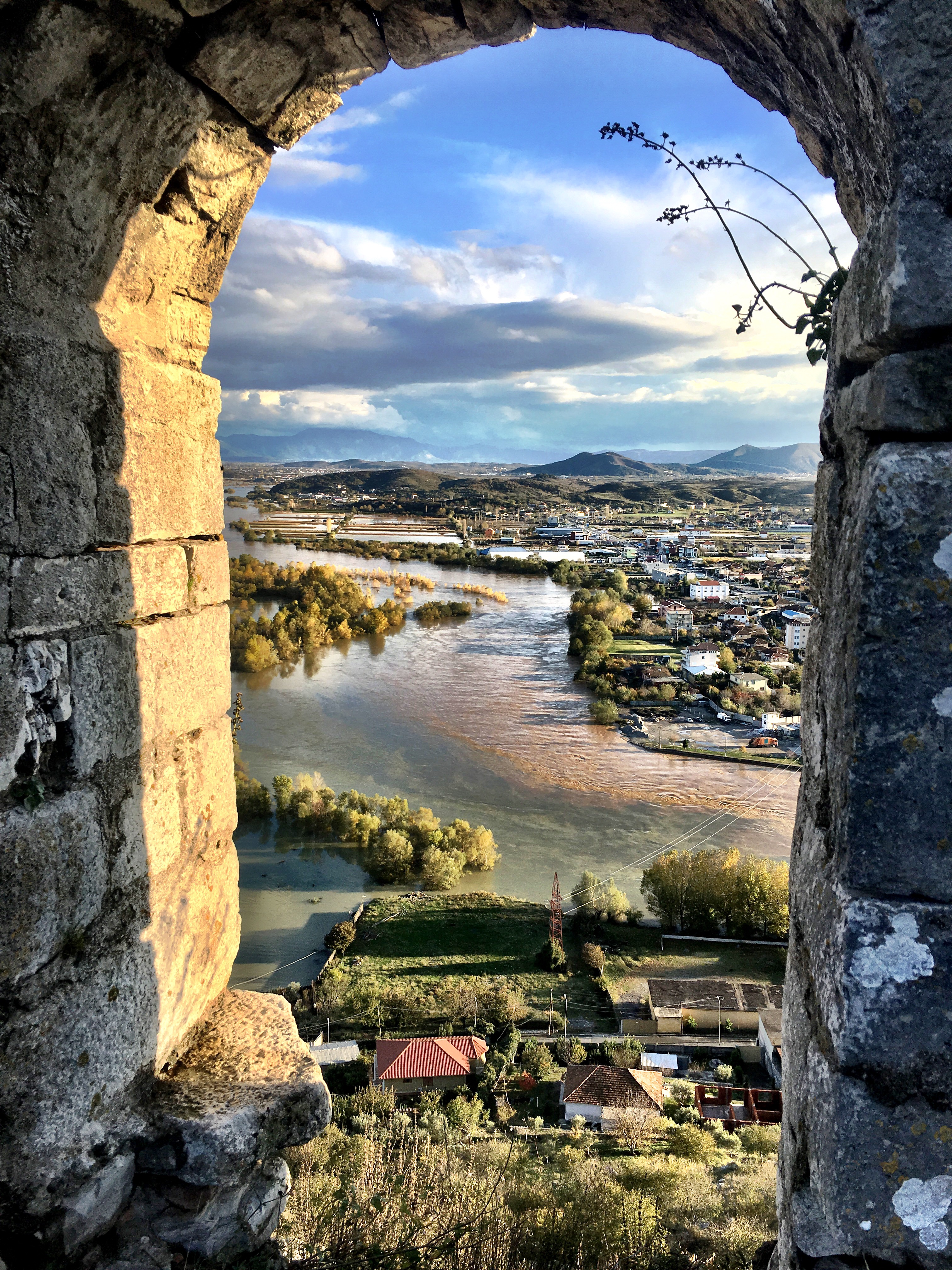 We spent a sunny afternoon exploring the fortress on the outskirts of the city. We acquired a stray dog as our tour guide for the afternoon ( a common occurrence for us these days) and he stuck by our side for hours and we hiked around the castle ruins. The view from the fortress was spectacular, you could see the beginnings of the lake, mountains in the distance and the surrounding homes that stretched out across the plains. Sadly, the storms we experienced in Kotor had not escaped Albania. The country just had the worst rainfall since the 1960’s. The plains were flooded and homes were half emersed in the water. Tirana, the capital, had to close their schools due to the flooding in the city centre. It put a damper on the otherwise idyllic setting.