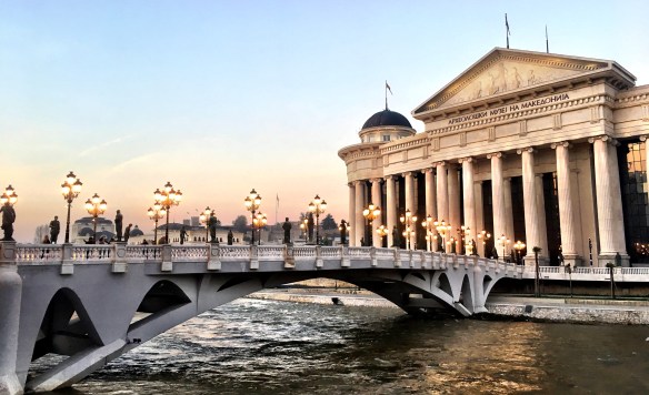 A river runs through the centre of the square, separating the old bazaar from the new town. In the river are three full-sized pirate ship replicas; the ships have been transformed into fancy restaurants a hotel and a casino. And everywhere you look there are statues. So. Many. Statues. We dubbed Skopje “The Vegas of the Balkans” and apparently we weren’t the only ones.