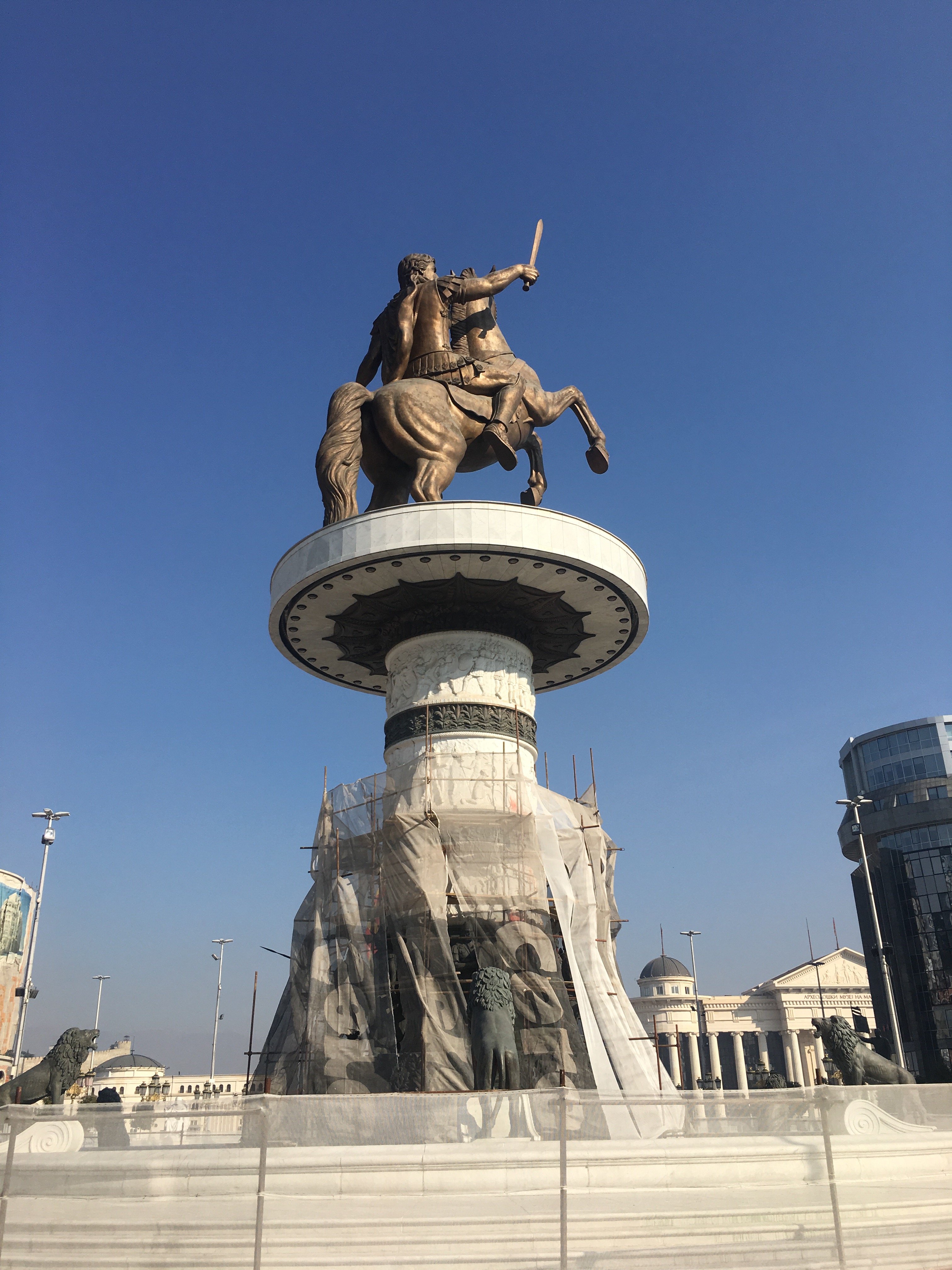 The statue was one of MANY erected in a project called “Skopje 2014”, the Prime minister’s attempt to modernize the capital and create a sense of national identity. It was projected to take 4 years and cost 80 million euros. To date, it’s been 6 years and is projected to cost over 1 billion euros by the time it is finished.