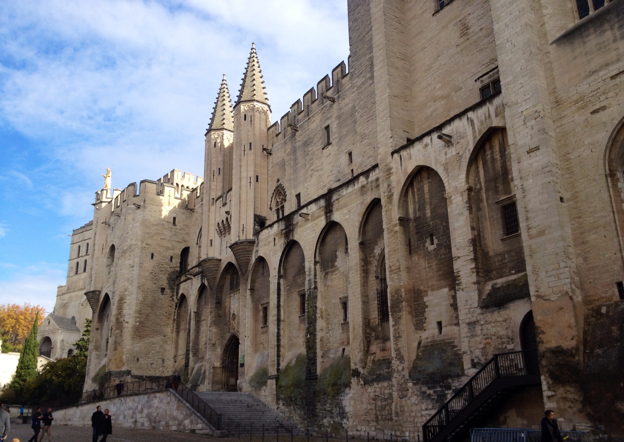 After the busy city of Marseille, Avignon was a medieval oasis of calm. It was by far my favourite city in France. The walled city, surrounded by a moat looks like a town from a fairytale. The famous Avignon Bridge (that now stands only half completed after being destroyed by the river years ago) and the Palais de Pape (a castle that served as the papal residence during the 14th century) make for some stunning backdrops to a picturesque, old brick town. I spent four days in Avignon, even though you can circle the outside of the city in a little less than an hour. I had high hopes of using Avignon as my home base for exploring small towns in the area like Les Baux and Arles. But in the end the rains came in, buses were scarce in the off season, and private tours were expensive. So I used my time in Avignon to relax: drink coffee, eat pastries and crepes, read a book. It was perfect! I walked around the city when the rains slowed, and even made the trek over to the new city one afternoon to take some more photos back on Avignon from across the rivers.
