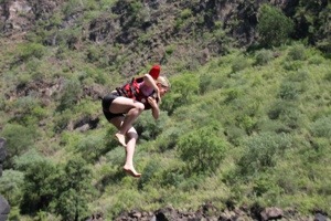 I turned to Kelsi. “Oh my god I love you so much right now!” We hugged and screamed and shouted into the echoing gorge, slowly spinning as we flew. 110 meters we glided all the way across the gorge. Then back, over the river below.