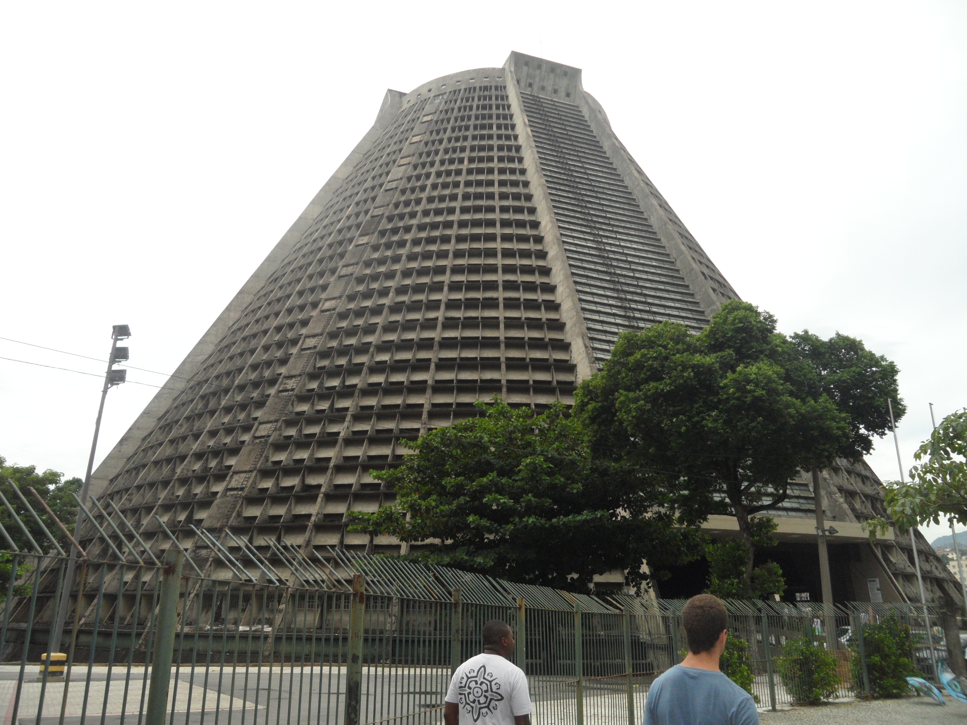 After the stadium, we quickly stopped by the centro of Rio to see the city’s largest church. It is a huge conical shape right in the heart of the business district and seems very out of place. The building is quite unique, with massive stained glass motifs stretching towards the ceiling. The church holds a total of 20 000 people, making it by far the largest (I think in the country). We just happened to arrive during Sunday mass, which was very neat; however, even though Brazil has the largest catholic population in the world, the place was not close to being full.